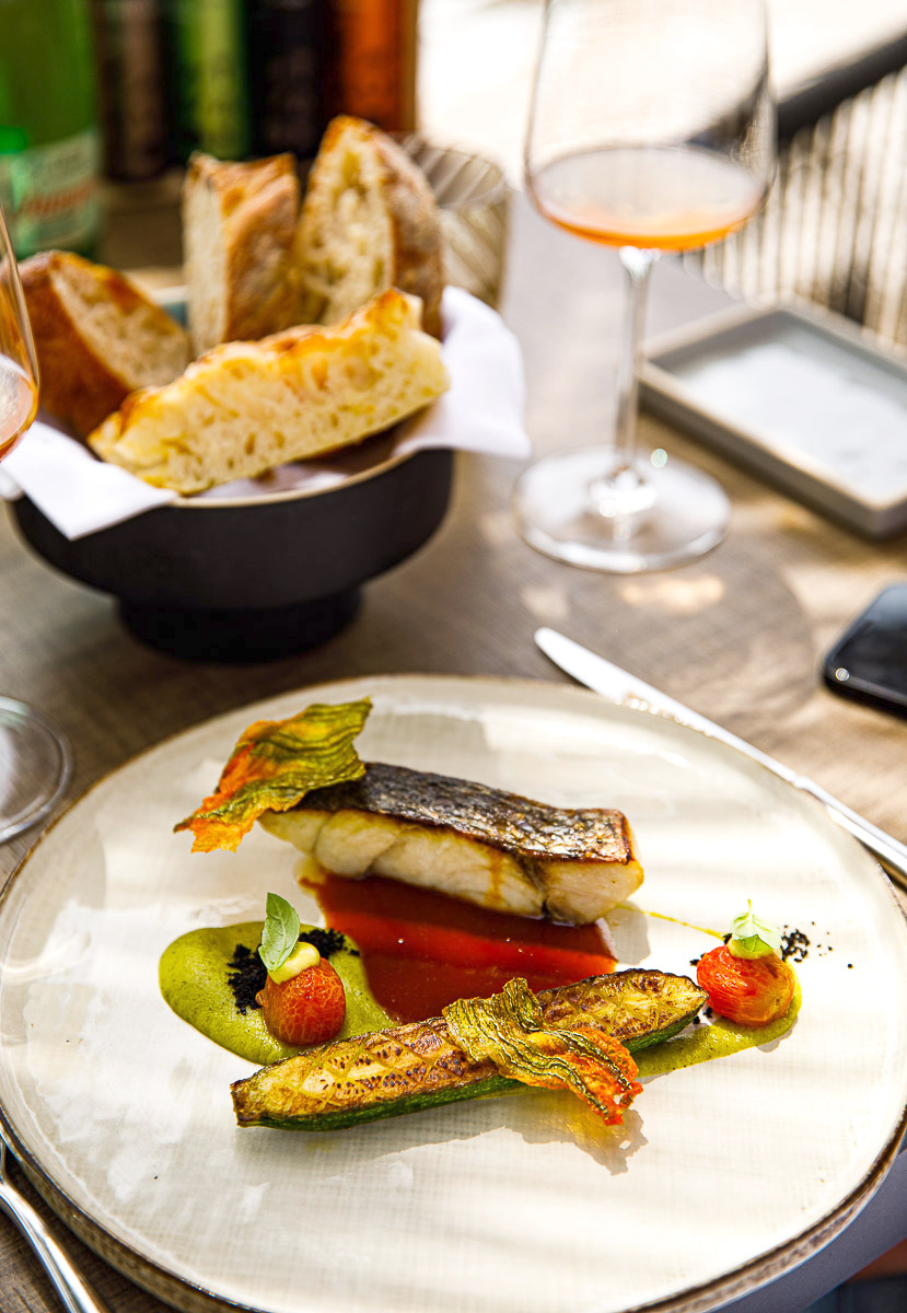 Agnolotti punjeni graškom, komoračem i limetom također su optimalno svježi, puni zelenih okusa i ugodnih kiselina, dok je pečeni patlidžan serviran s bogatom kremom od crvene i žute paprike s čipsom od patlidžana, pinjolima i mentom; radi se o jednom od uspjelijih tretmana našeg omiljenog povrća, nezasluženo zanemarenog u većini hrvatskih restoranskih kuhinja.
