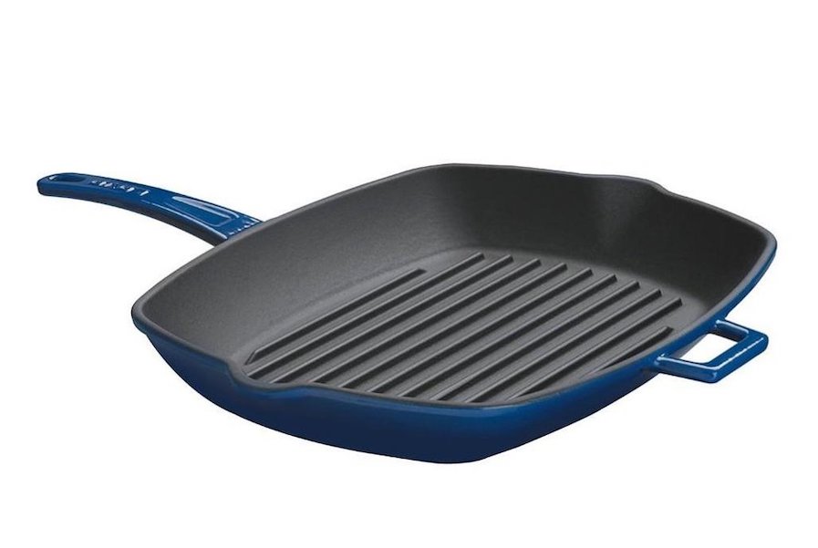 Nezamjenjiva za ljude koji žive u stanovima i nemaju roštilje. Grill tava od gusa nije ni prava zamjena za otvorenu vatru, ali nije ni obična tava. Zahtijeva malo drugačije rukovanje. Primjerice, hrana mora biti nešto tanje rezana nego da je pečete na roštilju ili običnoj tavi. Grill tava zbog rebara može odvojiti sokove od mesa i povrća, što omogućava da se površina hrane zapeče kako treba, a od sokova se mogu raditi izvrsni umaci i preljevi. Ako vam nedostaje miris dima, hrani koju pečete na grill tavi dodajte nešto dimljeno, pancetu recimo ili malo dimljene paprike. Izbjegavajte umjetni tekući dim. Prije pečenja hranu premažite s malo masnoće i dobro začinite. Najtraženije su grill tave s visokim stijenkama i one s kojih se ručke mogu odvajati.