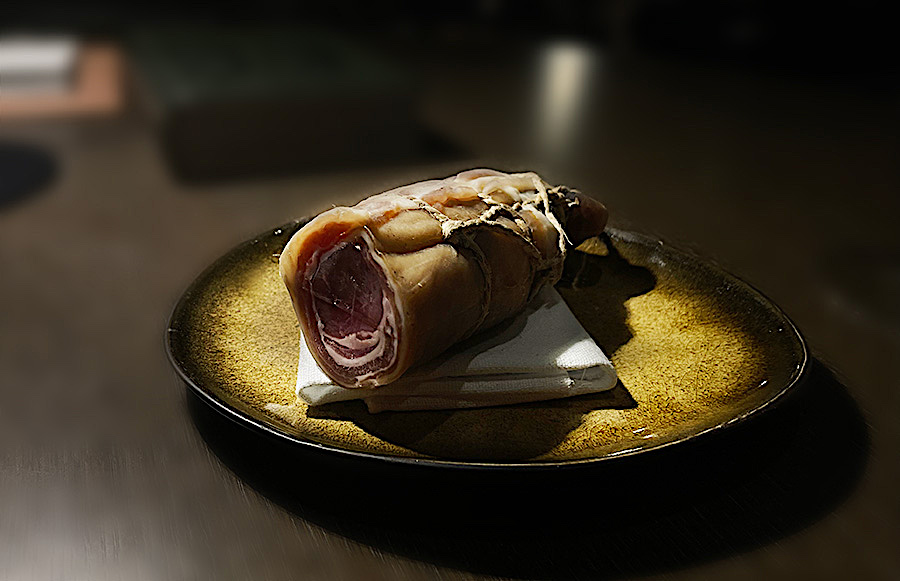 Bijeli tartuf servira se na žumanjku i kremi od mladog češnjaka, s kruhom aromatiziranim svježim vrganjima. Pršut od buče s dubokim, intenzivnim pestom od bučinih koštica, sušio se četrdeset dana. “Visio je kao pravi pršut,” pojasnio je Vella.