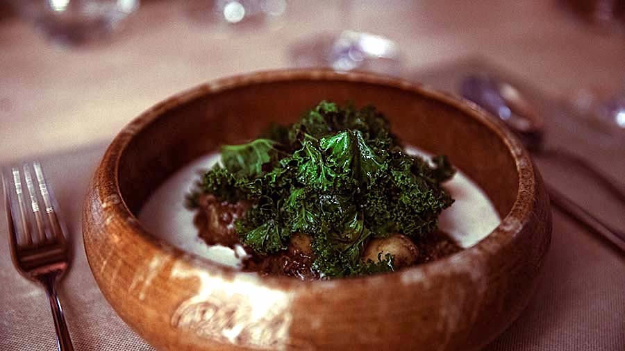Drugi je favorit juha od kestena sa suhim gljivama, koja se svojim elegantnim, duboko zemljastim okusom približava fine diningu. Ovdje se ne možemo ne sjetiti genijalne juhe od kestena koju je prije otprilike trinaest godina u Marcelinu kuhao veliki chef Mario Čerhak.