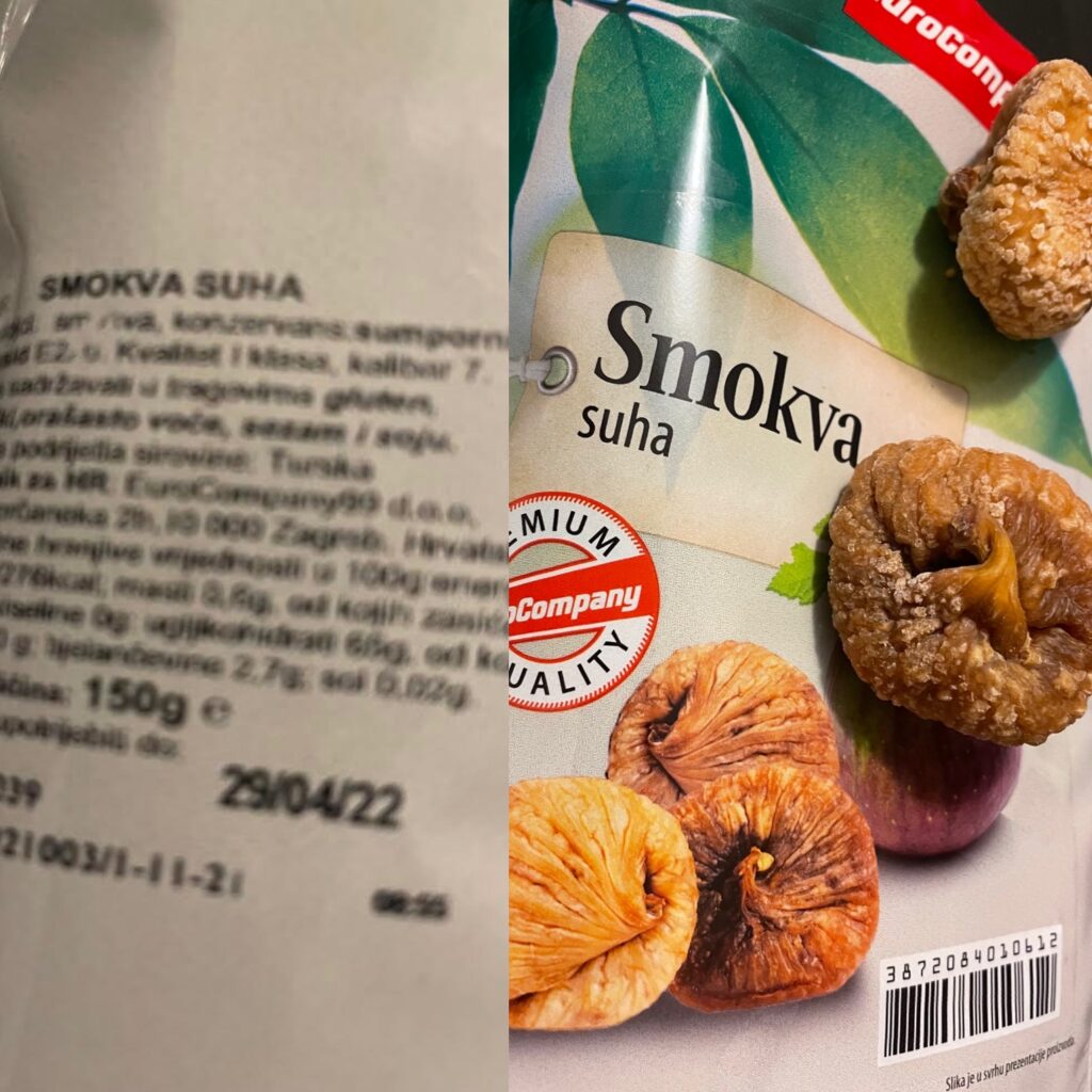 Zašto u naslovu piše mogu spadati? Zato što smo u nedjelju u našem lokalnom samoposluživanju kupili vrećicu suhih smokava bosanskohercegovačke tvrtke Eurocompany. Kad smo otvorili vrećicu od 150 grama, koja košta oko 15 kuna,  zaista nismo mogli vjerovati da se takvo  što legalno prodaje.