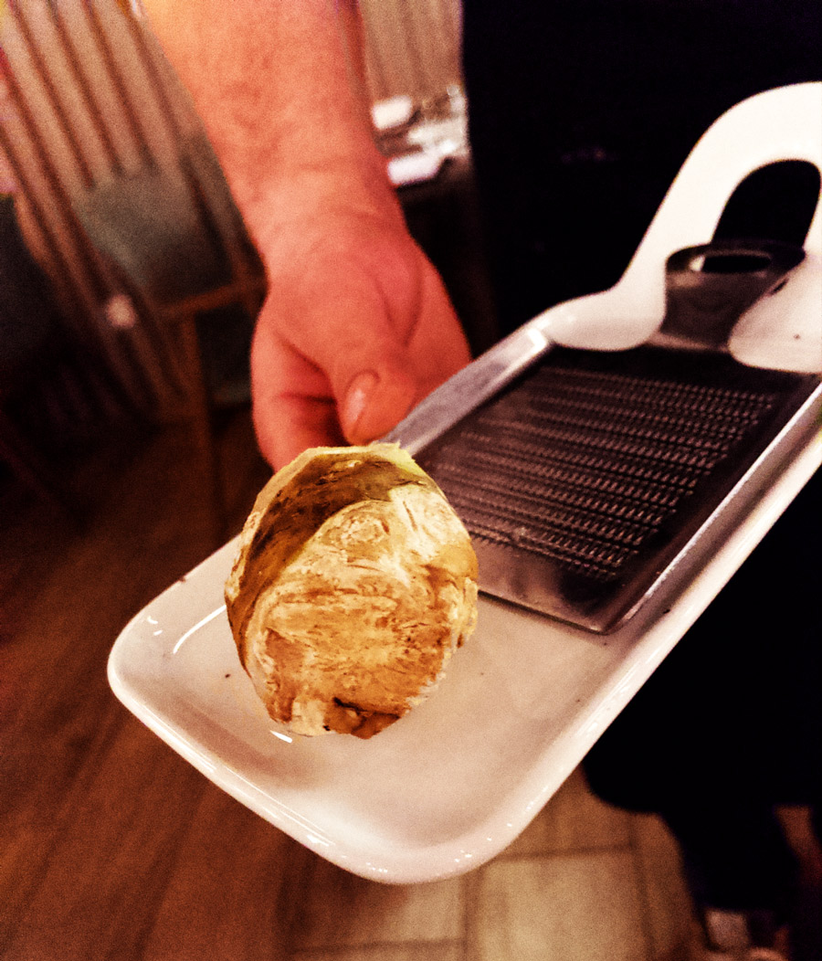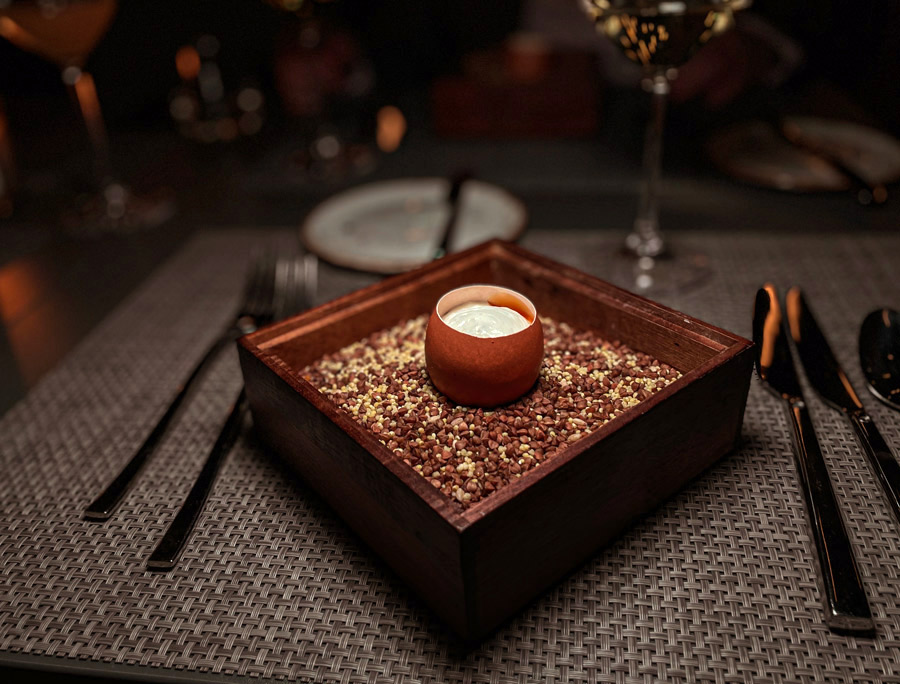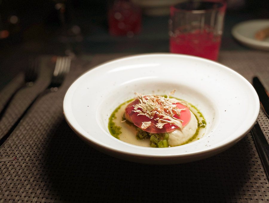 Posveta čuvenom Passardovom jaju koje se servira u odrezanoj ljusci ispala je teksturalno odlično ali s možda malo previse vlasca u gornjem sloju. Kozice servirane na čipsu od pileče kože dobile se snažan adrenalinski udar svježeg wasabija, dok je veoma dobroj tempuri od goveđih obraza nedostajao umak.