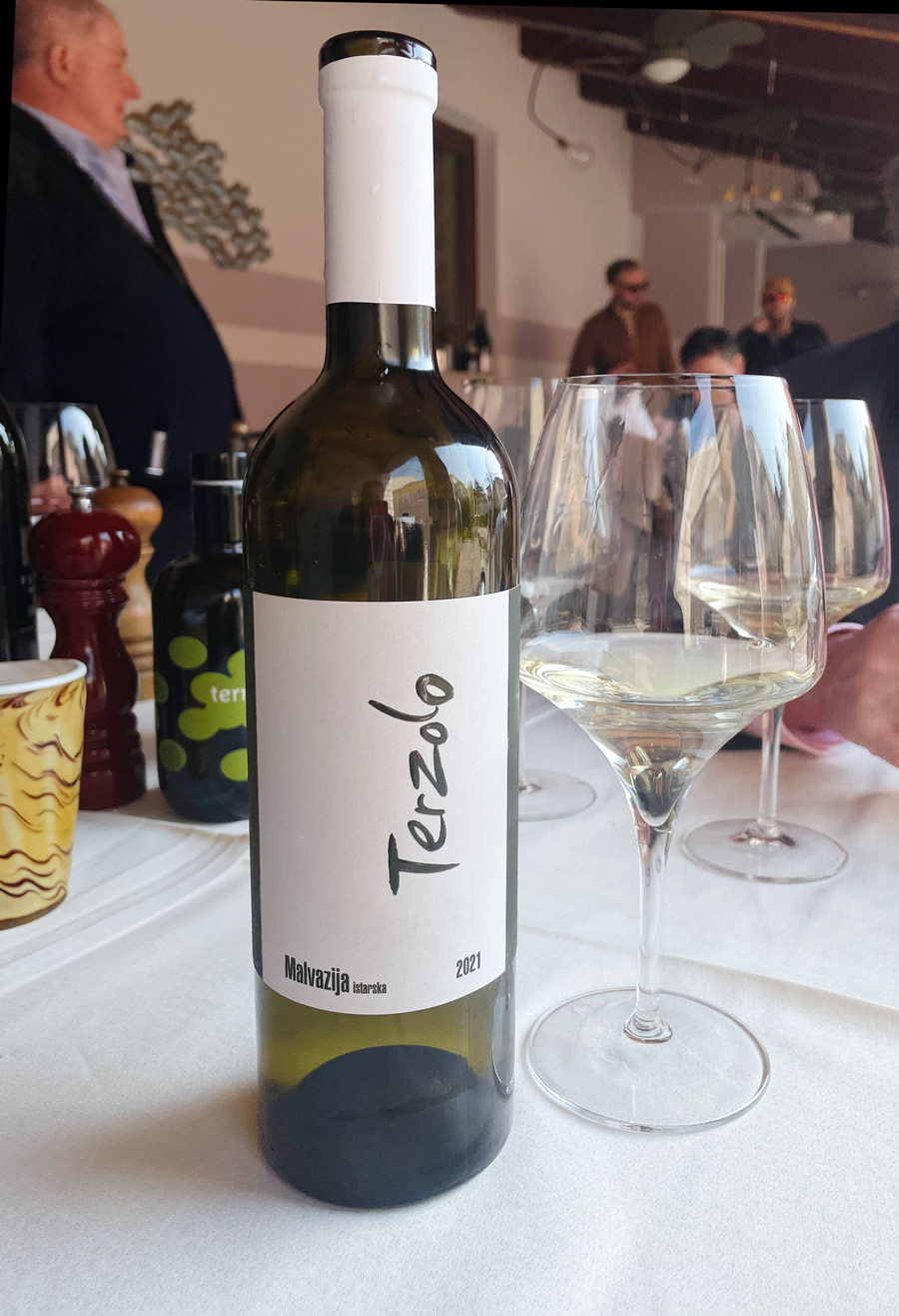 Izbor vina nije velik, no Čok uvijek drži par uistinu dobrih buteljki. Jučer smo pili šampionsku Laguninu Malvaziju Vižinadu iz 2015. i raspjevanu, šarmantnu Terzolovu mladu Malvaziju iz 2021. Čok je, razumije se, i za jučerašnji ručak bio prilično pun.