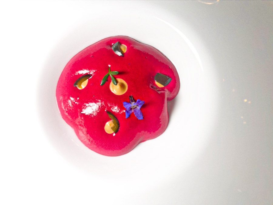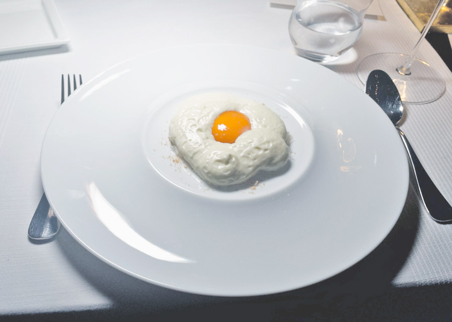 Drugo jelo koje nas se jako dojmilo bilo je jaje u šorbulu. Štefanova verzija meko kuhanog jaja izgleda kao da je došla s naslovnice neke monografije o američkom pop artu. Jaje se vizualno tretira kao umjetni, plastični objekt koji imitira stvarnu hranu. Za efekt plastičnosti zaslužna je čvrsta krema od sira koja glumi bjelanjak oko savršenog, tekućeg žumanjka. Divlje šparoge su se, prirodno, izvrsno složile sa Štefanovom verzijom jaka u šorbulu.