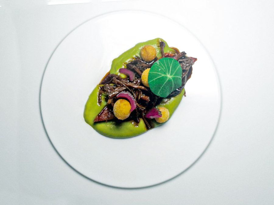 Iduću iznimno zanimljivu intervenciju Štefan je izveo na pečenoj hobotnici koju je poslužio s kiselim kupusom: “Sada se svi bave fermentacijama, pa smo se odlučili za jednu tradicijsku fermentaciju u netradicijskom kontekstu,” pojasnio je Pelegrinijev sommelier Brane Vukšić.