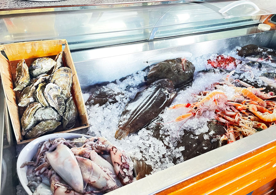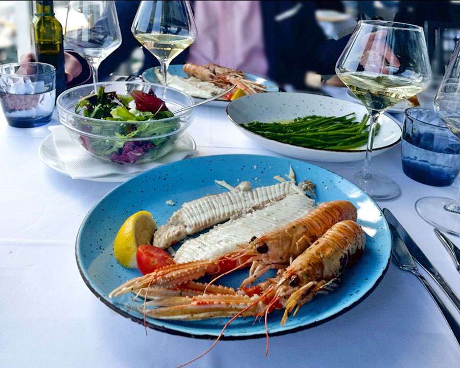 Za predjelo smo naručili dondole, vongole i dagnje s grilla, bez ikakvih začina : jednostavno, sočno, lagano s puno okusa mora. Zatim smo iz rashladne vitrine pune privlačnih riba i rakova izabrali ovećeg lista i par lijepih škampa.
