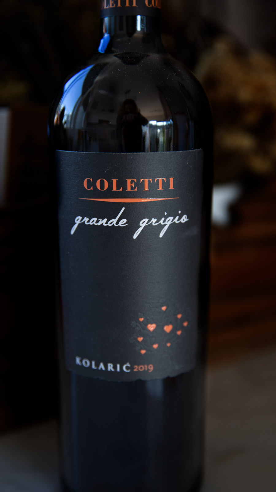 Poslije mladog Kolarićeva Sivog pinota kušali smo i Grande Grigio iz 2019. Riječ je o vinu školovanom u drvu, puno veće gustoće i snažnijih okusa i aroma koji balansiraju na rubu kasne berbe. Grande Grigio ima bogatu uljastu teksturu, zrele mirise dunja, kuhanih krušaka i jabuka iz kompota. Usprkos umjerenom alkoholu (13 posto) vino je veoma intenzivno. Otmjeni Grande Grigio sivi je pinot za fine dining restorane i srednja mjesta u njihovim degustacijskim menijima, rezervirana za poširane ribe ili rakove s kremastim umacima.