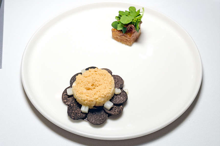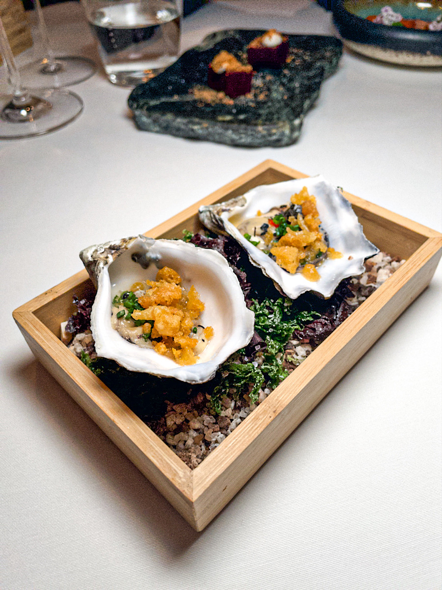 Tijekom četverosatne večere dogodile su se samo dvije manje greške: kukuruzni beignet lagano je zagorio (baš kao i rakovica u tempuri u Nomi prije par godina) a vino, Domaine Burdy iz Jure, patilo je od preizraženog bretta.