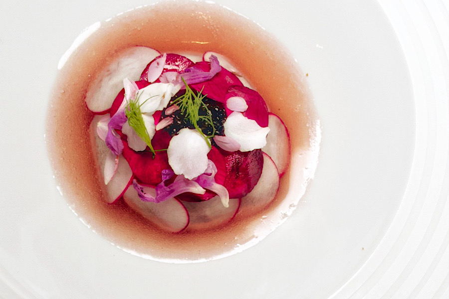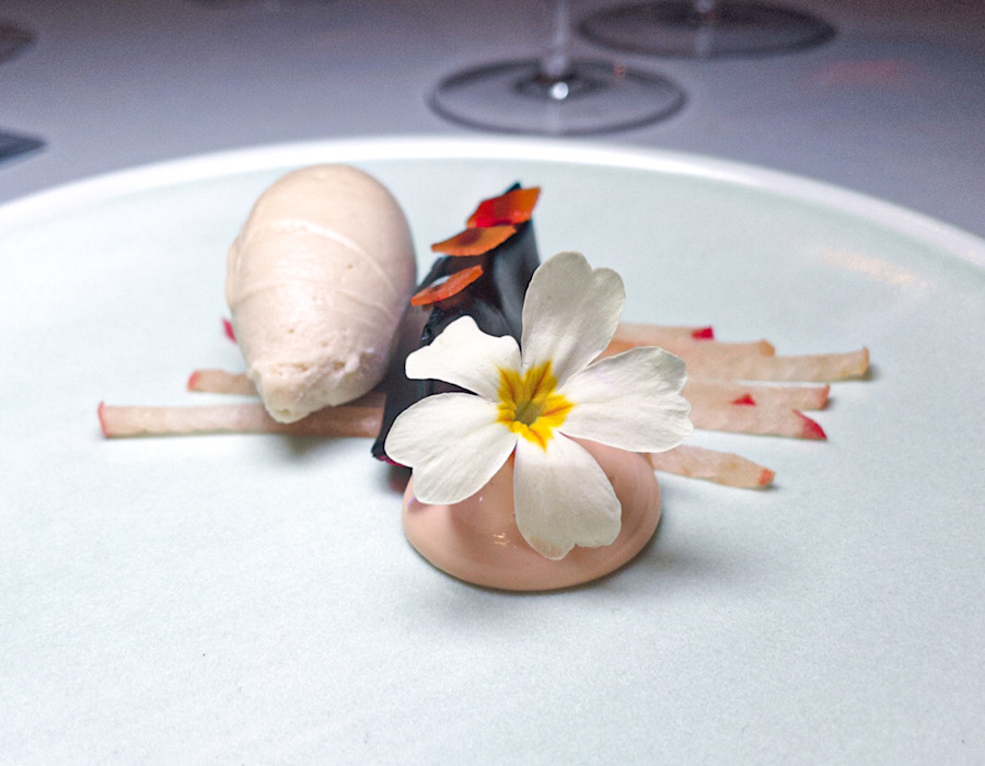 Desert glavne slastičarke Hiše Franko Maše Salopek od crvenog kupusa i jabuke s dipom od jaja i ružičastog grejpa spada među najoriginalnije pristupe restoranskom slastičarstvu.