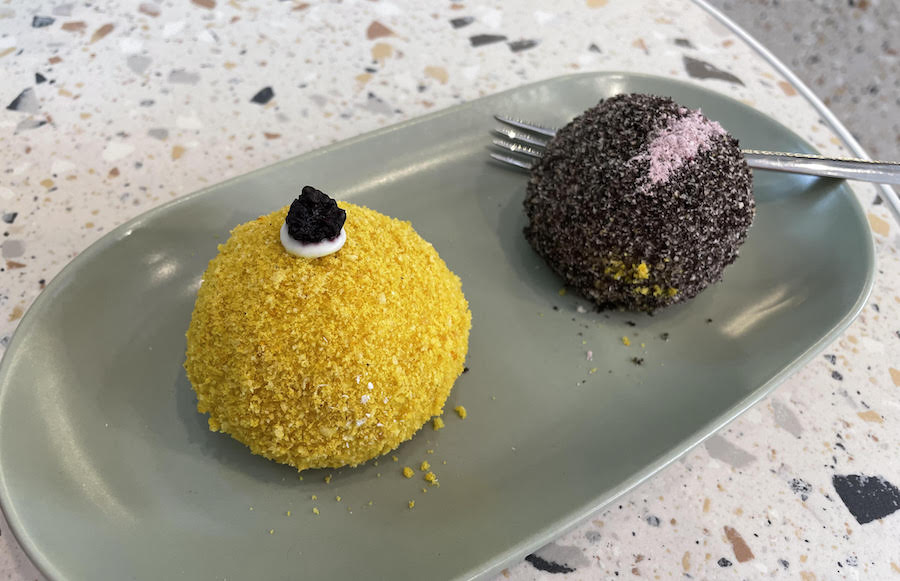 Jutros smo u Ferdinandu naručili čoko višnju i marakuju s divljom kupinom. Nazivi su odlično izabrani; divlja kupina zvuči seksi, a nemoguće je dokazati da nije divlja. Dizajn knedli također je veoma dobar: šarene su, zabavne, a opet ne pretjerano kičaste.