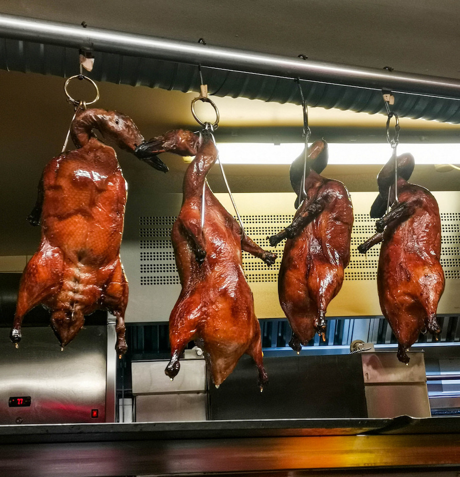 Nismo mogli odoljeti crvenom neonu pa smo ušli u Street, gdje se s vrata prvo vide cijele lakirane patke koje vise iznad otvorene kuhinje. Niz blistavih, cijelih životinja s glavama, baš kao što izgledaju pekinške patke u gastronomskim restoranima u Kini, sugerira da Bangkog Street misli ozbiljno. Miris pečenog mesa, karameliziranog češnjaka, začina i dima u zraku potvrđuje dojam.