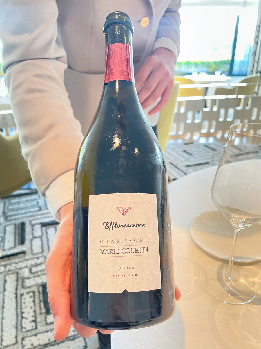 Plénitudeova vinska karta jest raskošna, debela i luksuzna, ali preočigledno korporacijska i pomalo dosadno konzervativna: gotovo da nema etikete koja se ne spominje u mainstream vinskim enciklopedijama objavljenima unatrag tridesetak godina. Izbor vina na čaše neobično je skroman za današnje standarde. Mi smo popili par čaša šampanjca, butelju alzaškog rizlinga iz 2011. i dvije čaše Morey St. Denisa iz 2016.