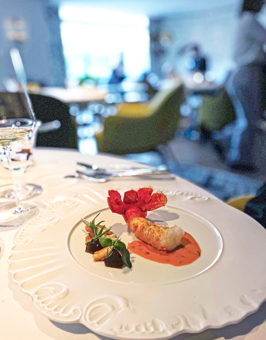 Sinoć smo s a la carte menija naručili srdele s nevenima i komoračem, škampe s artičokama, trilju s ježincem, pastrvu s kavijarom i školjkama, janjetinu s mladim provansalskim povrćem i šafranom, teletinu sa smrčcima, nekoliko sireva i jedan nevjerojatni čokoladni desert.