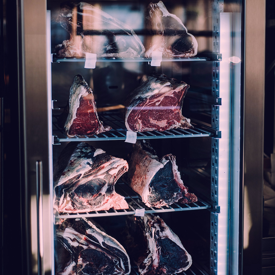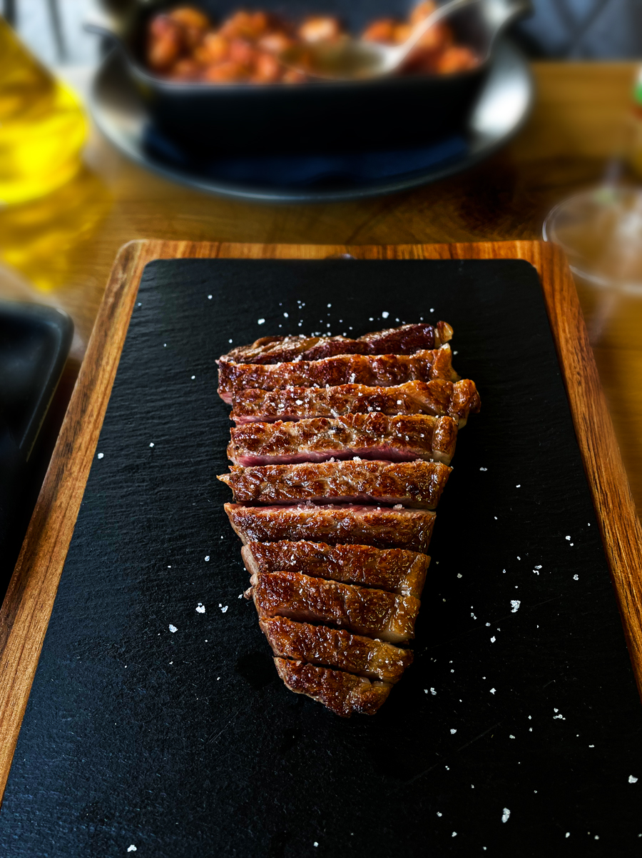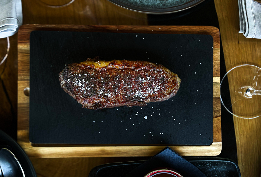 Chevo’s nudi tridesetak steakova starih između 45 i 100 dana, različitog porijekla: tu je više škotskih angusa, pa limousine, charolais, simentalke, japanski wagyu broj 12. Broj 12 označuje najviši mogući stupnaj intermuskularne masnoće. U Chevo’su smo naručili T-bone steak od limousinea koji je bio pečen u sekundu precizno po našim željama (medium, prema plusu ), mekan, nježan i neodoljiv, i New York strip od black angusa koji je ostao jarko crven iznutra, baš kako smo tražili, i imao onaj fantastični, moćni, intoksinirajući, zanosni miris i okus dugo odležane govedine.