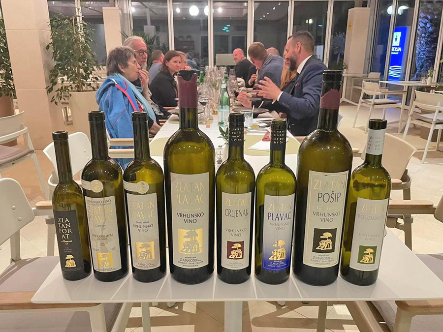Nakon povratka s Hvara i kraćeg odmora u Makarskoj, uslijedila je degustacijska večera s vinskim pairingom vinarije Zlatan Otok. U Restoranu Freyja u Tučepima, mladi i talentirani chef Josip Tomas pripremio fantastičnu kombinaciju ribljeg i mesnog menija. Večera je počela s krekerom od tune i avokada, nastavila se triljom od kamena s pinjolima i motarom, slijedila je pečena hobotnica s pireom od cvjetače koja je fantastično išla uz koncentrirani Pošip Grand Select 2018. iz magnuma, dok je domaća janjetina u umaku od smokava i naranče izvrsno pratila Crljenak iz 2016. Vrhunac večere bio je 60 dana odležani ramstek u demiglaceu s tri berbe kultnog Dalmatinskog plavca Grand Cru 2013, 2011. i 2007. Berba 2007. i nakon 15 godina je monumentalna, s aromama rogača, kože i lovorovog lista, dok su tanini još prisutni a kiselina živahna. Zlatanov Grand Cru tj. Grand Select može zasigurno je benchmark za premium plavce i jedan od najkonzistentnijih i najdugovječnijih plavaca na tržištu od njegove inaguracije 2001. godine. Večera je završila s tortom Makaranom i Zlatanom Porat Reserve 1998.