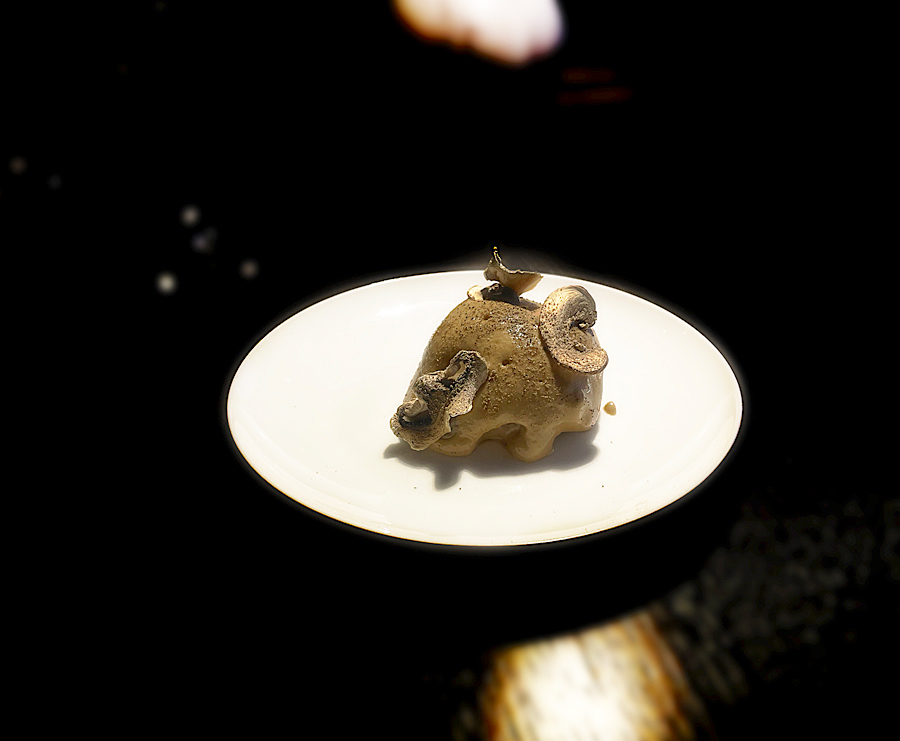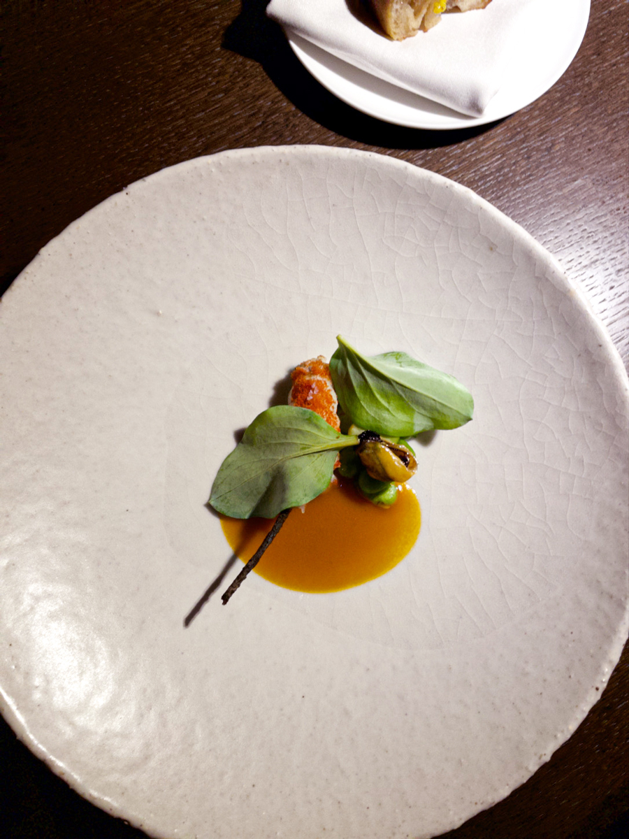 U četvrtak navečer degustacijski meni otvarao se s tri amuse bouchea, od kojih je srednji “tiramisu” od gljiva bio toliko intenzivan i ukusan da bi mogao igrati ulogu jednog od potpisnih glavnih jela. “Tiramisu” od gljiva oblikovan je kao profiterol (s tijestom koje teksturom podsjeća na savoiarde) u tamnom gustom umaku od portobella, s prahom tartufa.