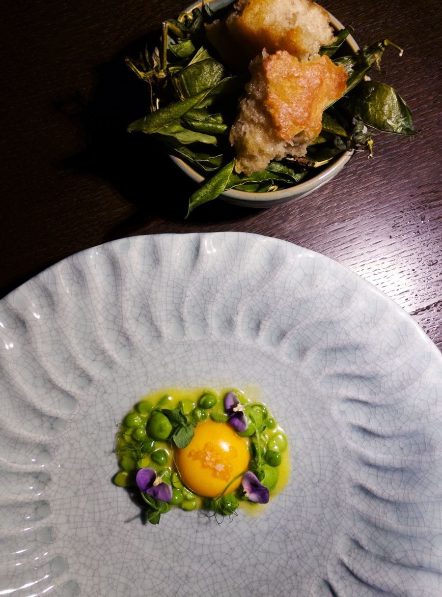Mladi grašak na maslacu, sladak i skuhan al dente (baš kao kod Bruna Verjusa prije mjesec i pol u Parizu) poslužen je sa svilenkasto kremastim žumanjkom i blago dimljenom focacciom. I tuna i grašak pokazuju da se u Vellinom rukopisu intenzitet konačnog okusa ne postiže intenzivnom, žestokom obradom pojedinih sastojaka (svi se zasebno doimaju blagi) nego kompozicijom cijelog jela.