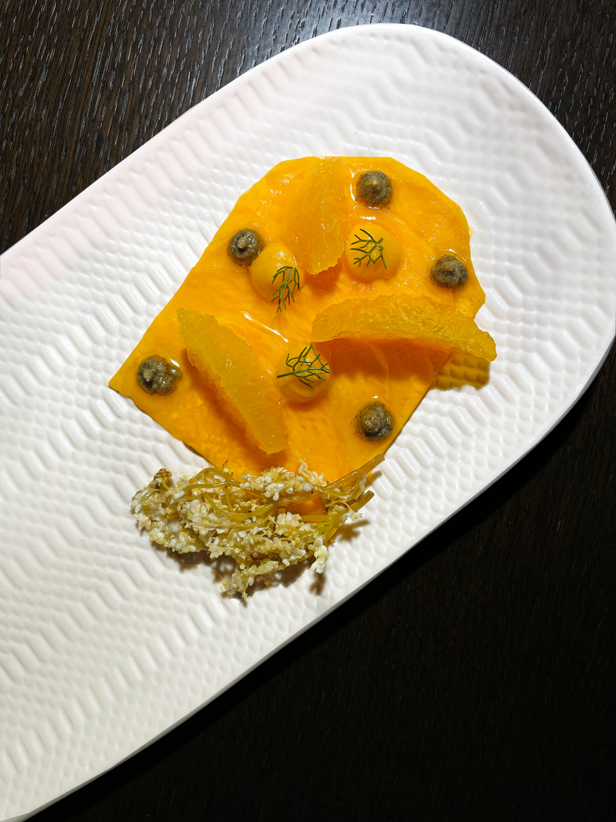 Zilli je fenomenalan u sali, i jako se dobro razumije u vina; Cap Aureova vinska karta napunila se među ostalim nizom etiketa prirodnih vina, pa smo uz veći dio večere uživali u Križevu Grku iz 2019, oranžu s Pelješca za koji je teško pronaći dovoljno komplimenata. Večeru smo završili u velikom stilu, s platinastim Benvenutijevim San Salvatoreom iz 2015. godine.