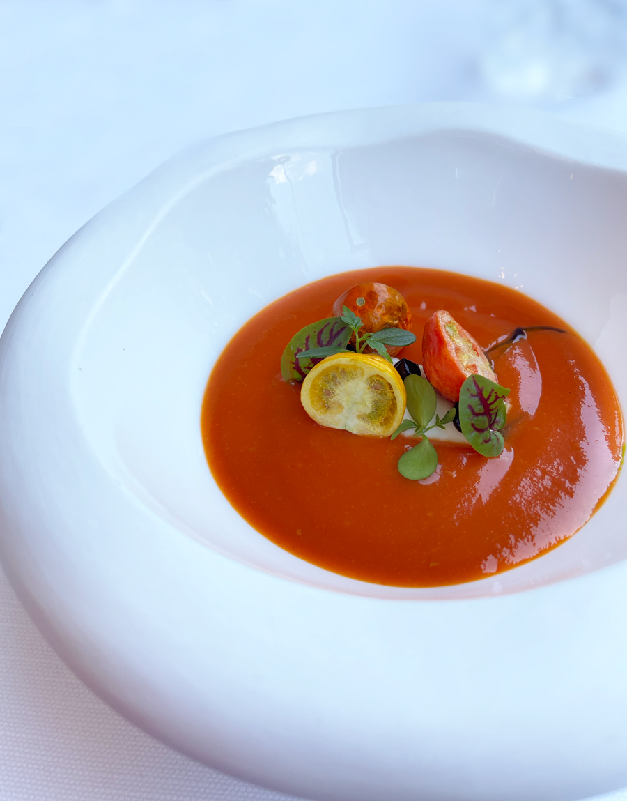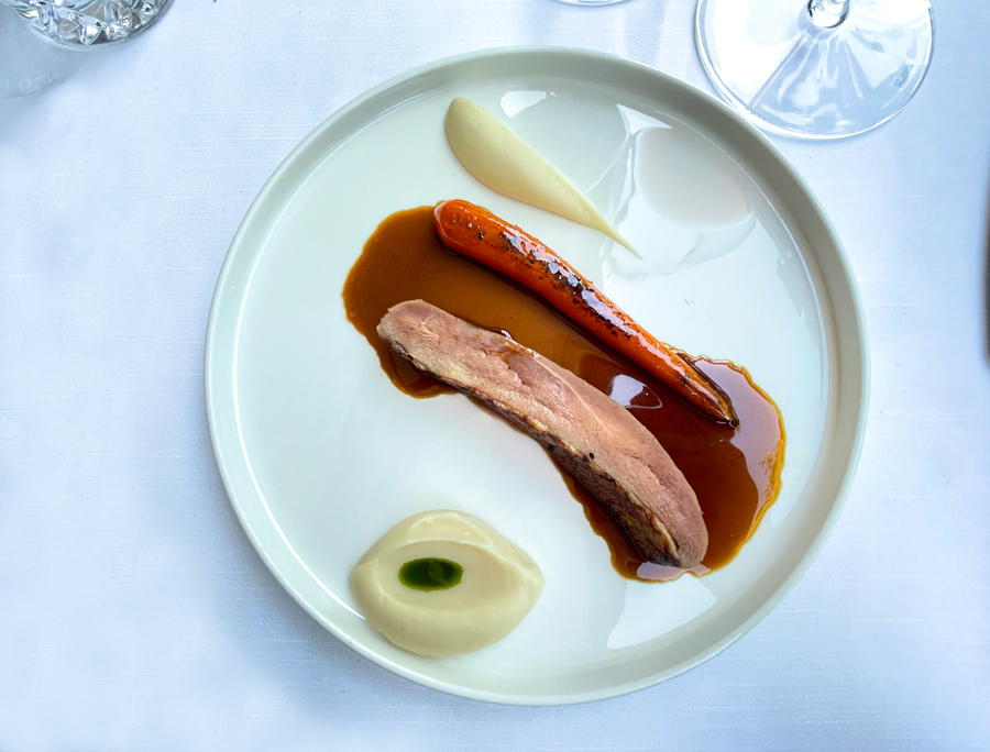 Jelovnik je podijeljen na dva dijela: gosti mogu birati između nekoliko opcija degustacijskog menija i dvadesetak ili više jela a la carte. Mi smo naručili šestosljedne degustacijske menije koji koštaju 75 eura po osobi. S pozdravima iz kuhinje, preddesertom i petits fours, šestosljedni meni postaje, naravno, desetosljedni, pa predstavlja izvrsnu vrijednost za novac.