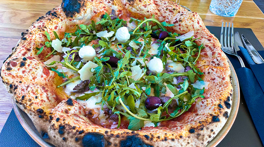 Pizza je, pak, konstantno veoma dobra do odlična, i peče se u pravoj krušnoj peći što je u Zagrebu postalo rijetko. Danas smo u Publicu naručili napoletanu s trakicama bifteka. Pizza je došla na stol za par minuta, baš kako treba kad je riječi o pizzi iz zaista vruće krušne peći. Pizza je fantastično mirisala. Visoki rubovi imali su ispravan leopardov uzorak; tijesto je na rubovima bilo prozračno a u sredini vrlo tanko i elastično.