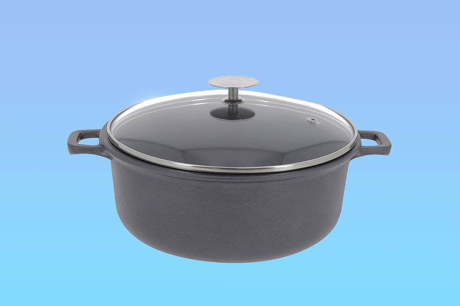 De Buyerov CHOC EXTREME lonac od lijevanog aluminija sa staklenim poklopcem priredio nam je drugo veliko iznenađenje na testu. Lonci za kuhanje su naizgled najprozaičniji komad posuđa. Nitko o njima ne piše eseje, nitko ih ne komentira osobito niti snima dugačke video recenzije za YouTube. Ni aluminij tradicionalno nema osobit imidž u kuhinjama. Ali ovaj De Buyerov materijal je nešto sasvim drugo i pokazuje koliku razliku dobar lonac čini u kuhinji. Deblje stijenke, ručke koje se ne pregrijavaju i poklopac koji precizno dihta prvi privlače pažnju.