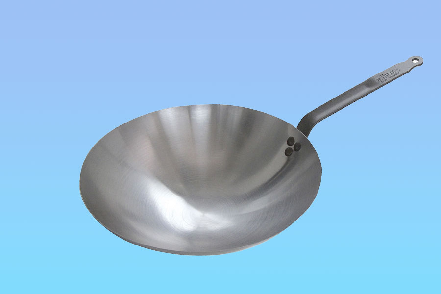 Jedan nas je De Buyerov komad ipak oduševio. Okrugli wok. Iako smo nedavno svoj prastari dotrajali wok zamijenili Ken Hom radnim wokom od ugljičnog čelika s ravnim dnom (i njega smo kupili na akciji Azijske kuhinje u Loncima&Poklopcima) kuhanje u De Buyerovu woku bio je takav užitak da smo udomili i njega. Uzeli smo najveći CARBONE PLUS wok s okruglim dnom. To je veliki, široki i plići wok s dugačkom savijenom metalnom drškom (De Buyerova posveta tradicionalnim francuskim loncima).