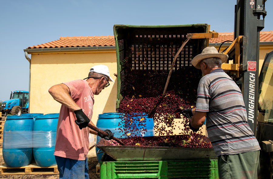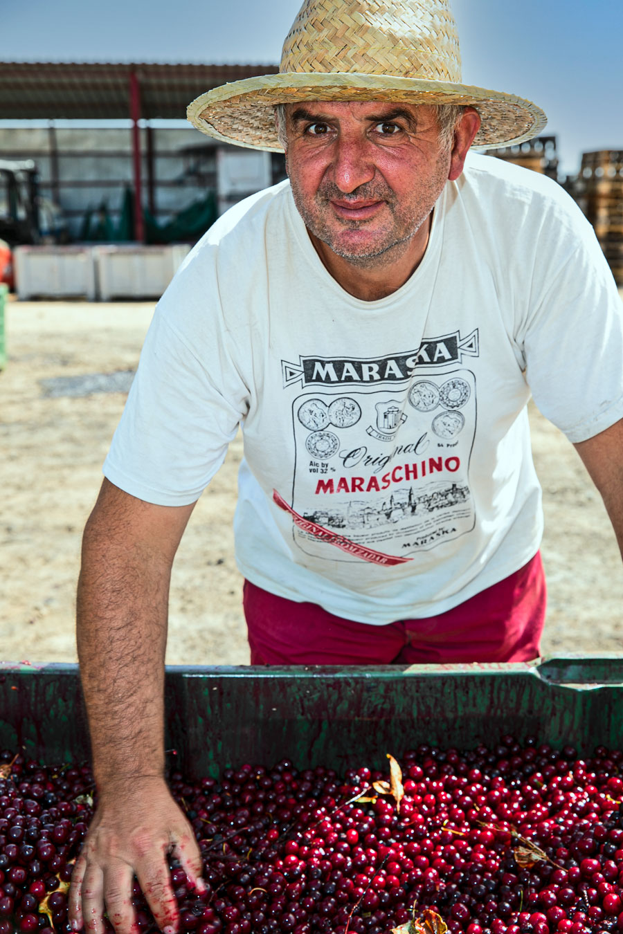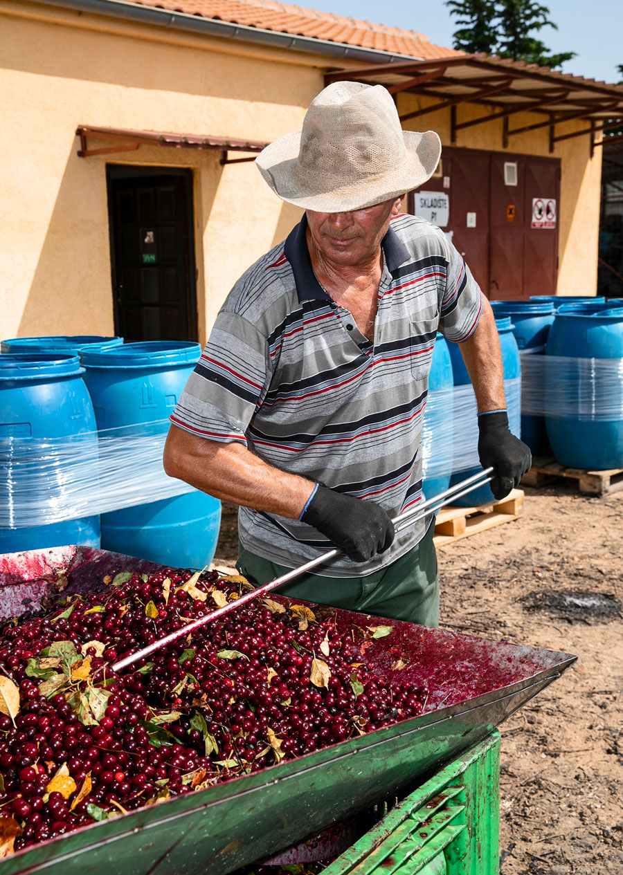 Poslije sat i pol na plantaži vratili smo se u tvornicu. Kamion je upravo istovarivao boksove netom ubranih višanja. Dio višanja odvaja se za Amarena nektare i, na što su posebno ponosni u Maraski, za Amarena premium sirup, dok se drugi dio odmah odvozi u pogon alkoholnih pića.