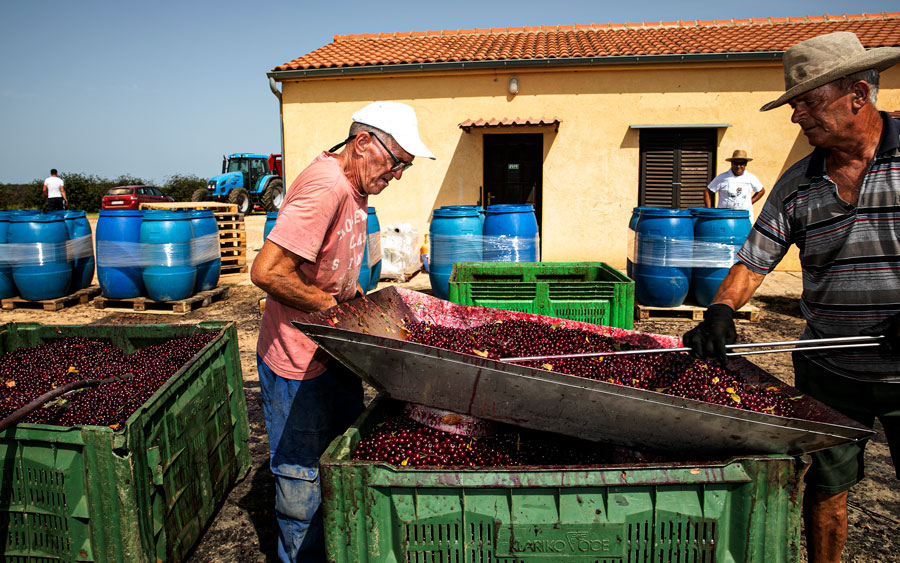 Na četrdeset i više stupnjeva vrijedni Maraskini radnici iz dana u dana beru marašku. Ove su godine imali sreće sa zmijama, pa su tijekom berbe naišli na svega dva poskoka.
