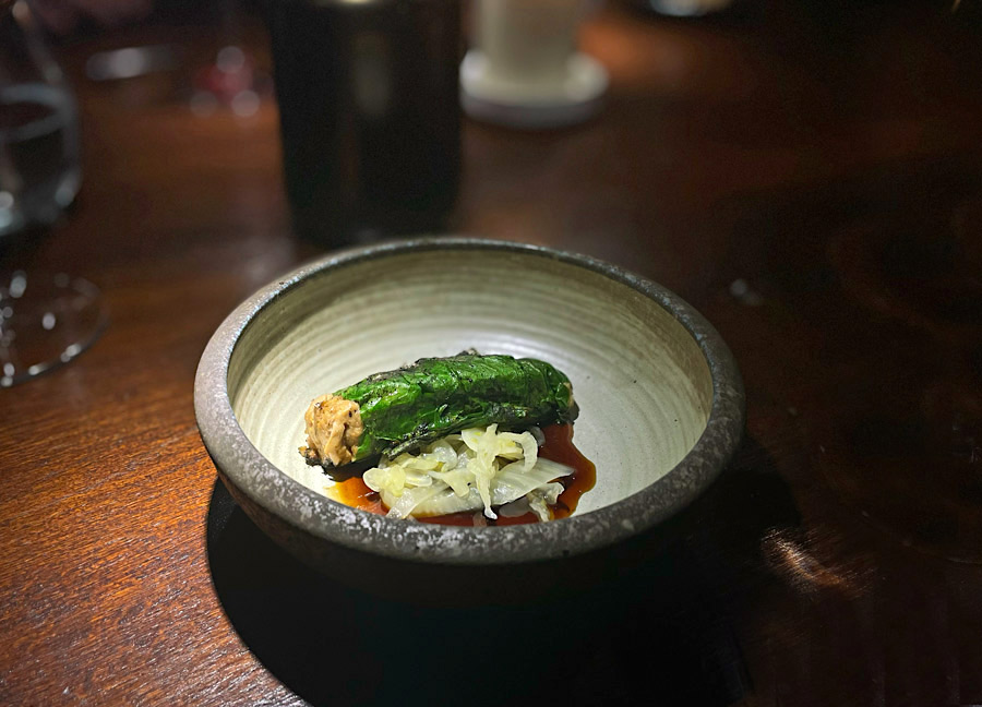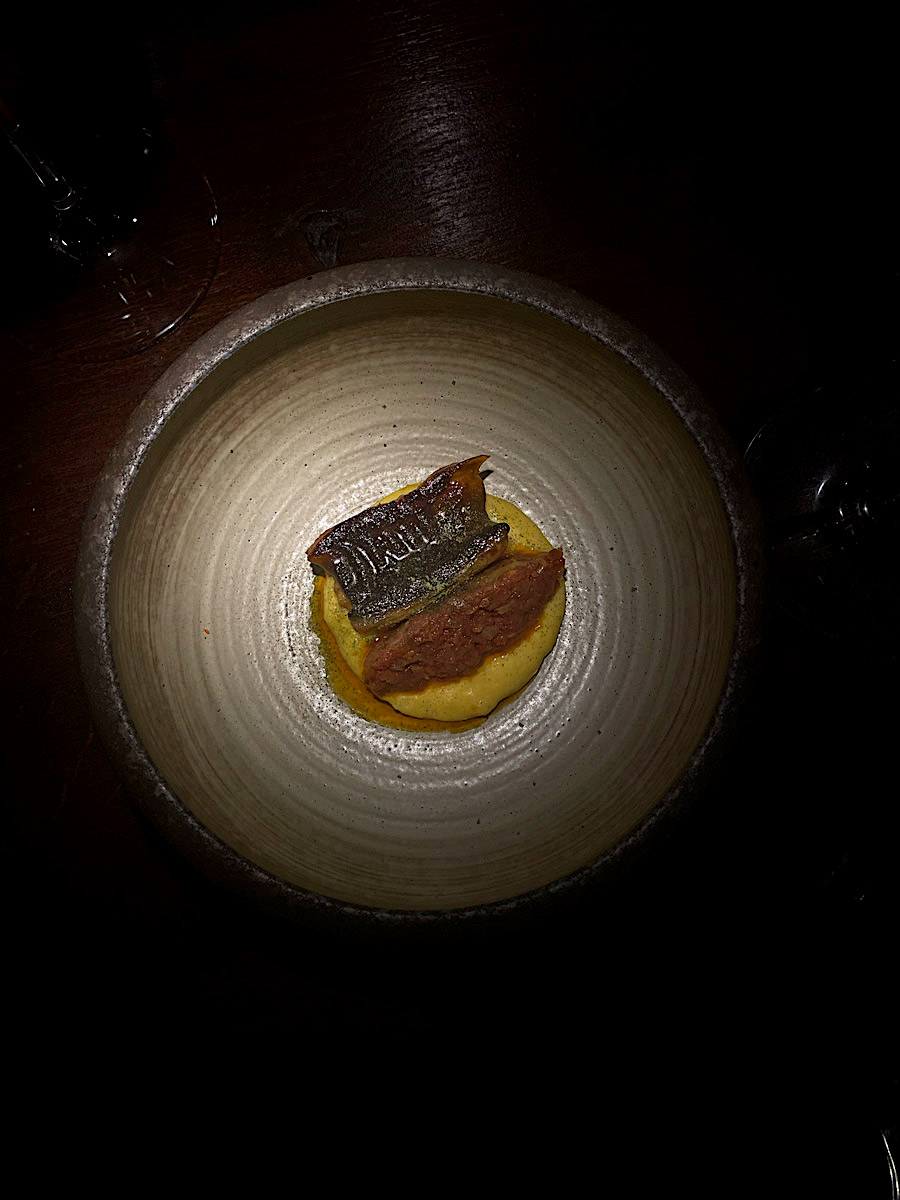 U kategoriju moćnih jela još spadaju izvrsna odmaštena pečena jegulja s palentom od mladog kukuruza i prahom od rogača (koji je snažno mirisao po čokoladi) i pulled pork od crne slavonske svinje zamotan u mladu blitvu. Svinjetina se peče za stolom, na malom roštilju s “briketima” od japanskog hrasta.