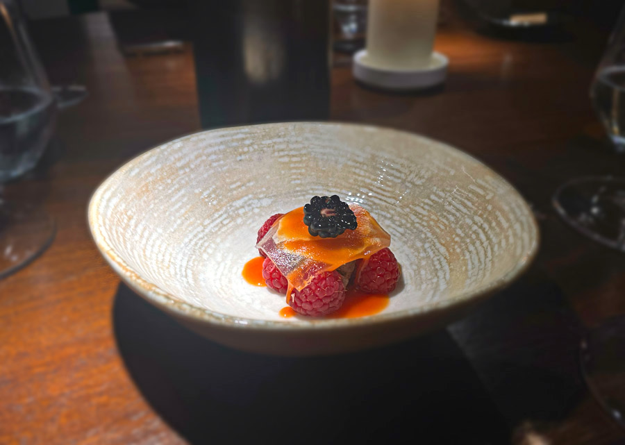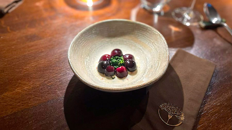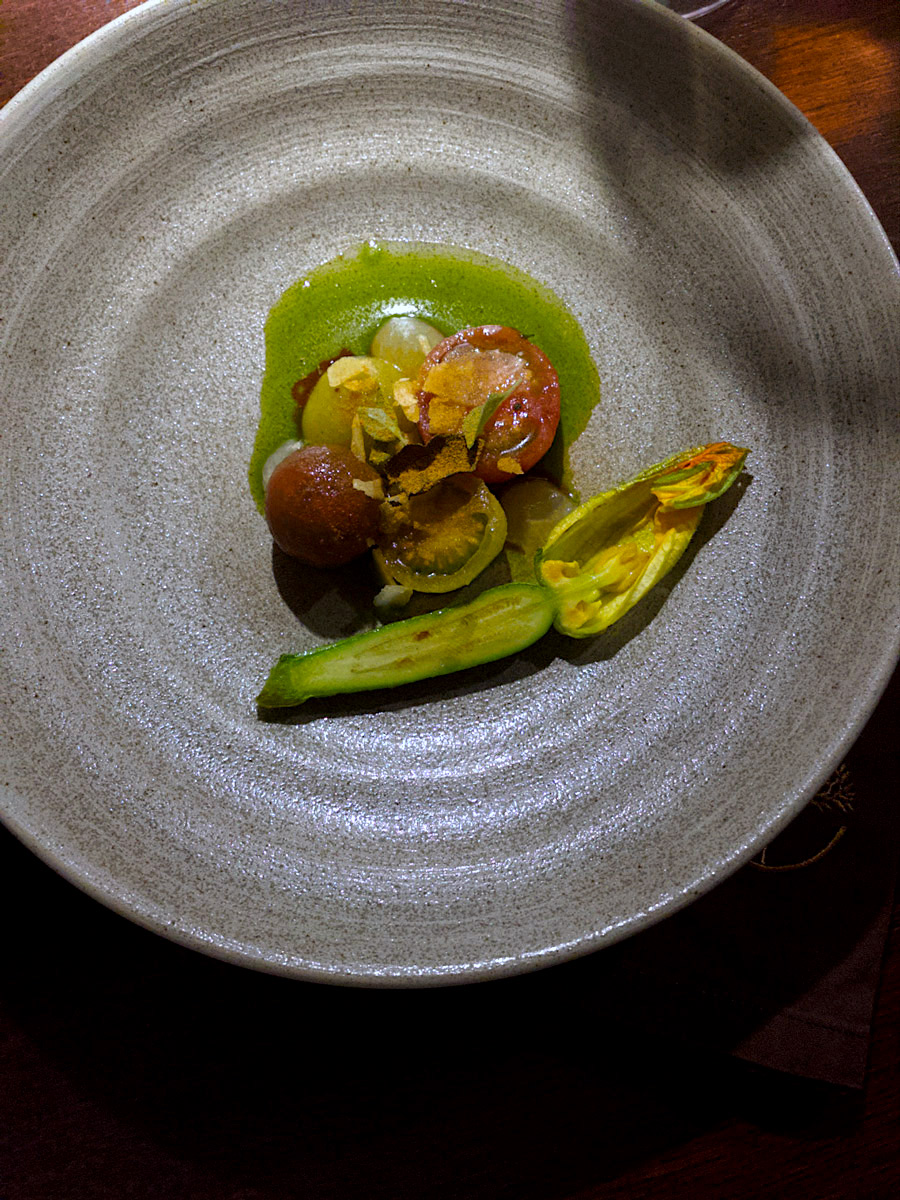 Sva su druga sinoćnja Šakotina jela bila ljetno prozračna, šarmantna i netipično nježna. Blago zadimljene trešnje s blitvom, apsolutno nezaboravne, možda najvjernije odražavaju mekanu stranu karaktera višekratnog hrvatskog Chefa godine. Tri vrste rajčica s tri vrste bosiljka, paškim sirom i cvijetom tikvice jedno su od najkompleksnijih sezonskih jela koja smo probali ove godine.