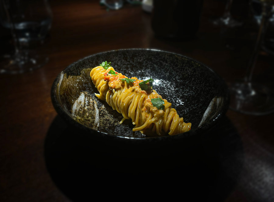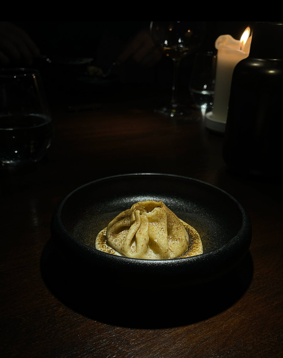 Hladni rezanci s lignjama uspješan su primjer comfort fooda unutar Navova rukopisa, a izvrsni ” rižoto” od lubenica pristupom formi rižota podsjetio nas je na Passardov “rižoto” od celera. Naposljetku, bučnica u dim sum izdanju, s kremom od Šakotina sira, bila je naprosto briljantna.