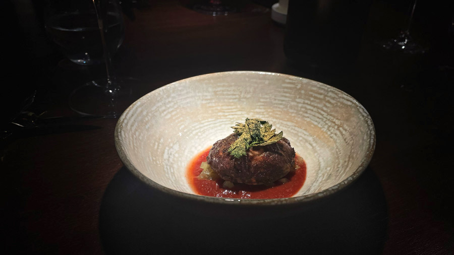 Sva su druga sinoćnja Šakotina jela bila ljetno prozračna, šarmantna i netipično nježna. Blago zadimljene trešnje s blitvom, apsolutno nezaboravne, možda najvjernije odražavaju mekanu stranu karaktera višekratnog hrvatskog Chefa godine. Tri vrste rajčica s tri vrste bosiljka, paškim sirom i cvijetom tikvice jedno su od najkompleksnijih sezonskih jela koja smo probali ove godine.
