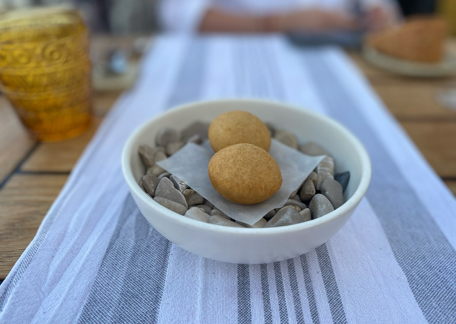 Carpaccio od brancina, domaći grašak, majoneza od inćuna i ulje mente jedino jelo je na koje imamo zamjerku u cijelo večeri. Dodaci brancinu su bili ipak malo previše zemljasti i eutanazirali su okus svježe ribe. Za popravak je došao klasik koji je već godinama na meniju, kuglice brancina na bijelo u šalši. Vunićevo i Zijavičino potpisno jelo za koje se nadamo da nikad neće otići sa jelovnika, a dobili smo dojam da ni ne smije. Chef Stiven kaže da gosti uvijek očekuju upravo te kuglice.