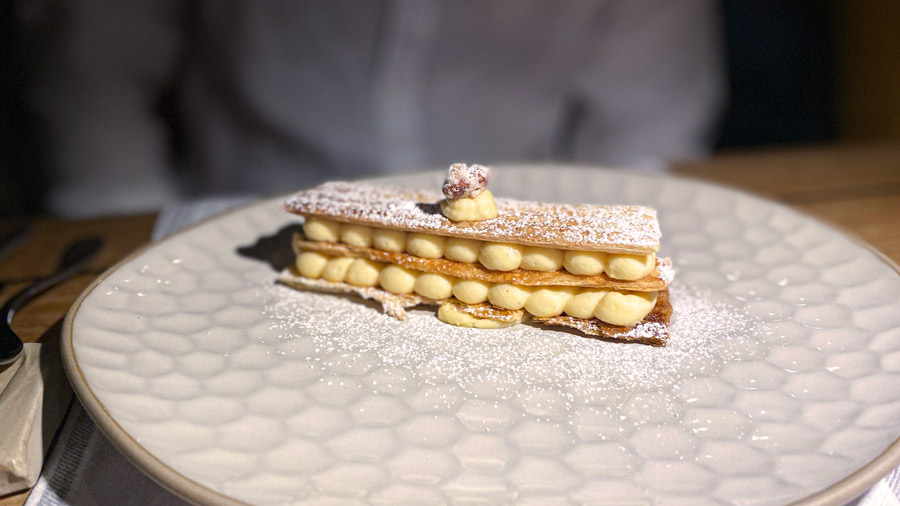 Broskva i pate od kozica nadopunjuju jelo na kreativan i ukusan način. Prije deserta smo još dobili i hobotnicu kuhanu na pari s cvjetačom koja je lijepo zaokružila cijelu večeru. Deserti Tee Vunić su standardno vrlo dobri, posebno millefoglie, i prate Stivenove tanjure.