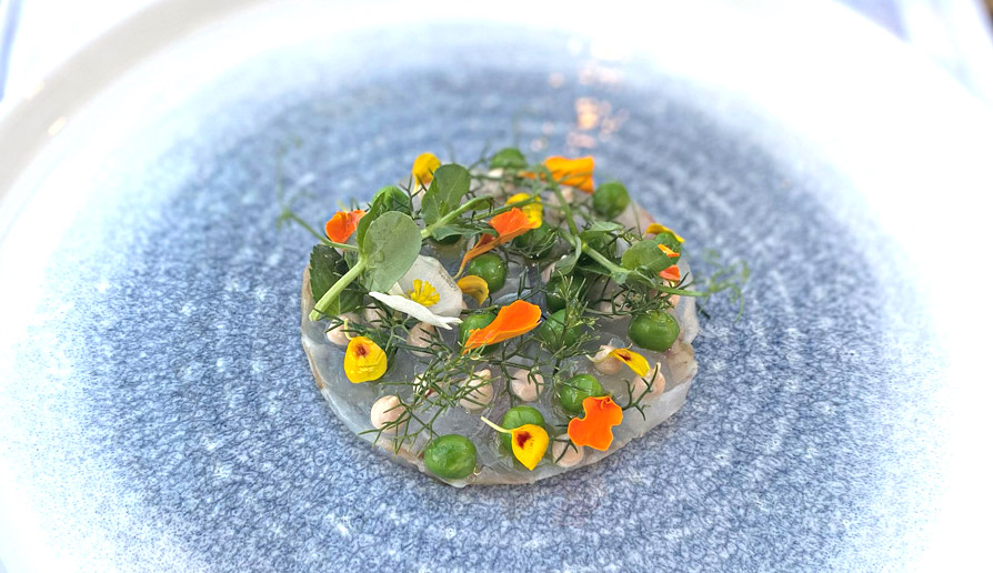 Četvrti slijed i prvo toplo predjelo bio je definitivno najbolji tanjur večeri. Škombar, odnosno skuša, krema od kukuruza spojena s tehnički savršenim hollandaise umakom, mahune koje teksturom neodoljivo podsjećaju na popularni mac and cheese, crumble od inućuna, umak od pečene paprike i vlasac. Ovdje Stiven pokazuje elegantnu ruku, bez puno pretjerivanja u tehnikama. No, svaki element ima svoje mjesto na tanjuru s različitim teksturama, a okusi su maksimalno izvučeni i međusobno se nadopunjuju.