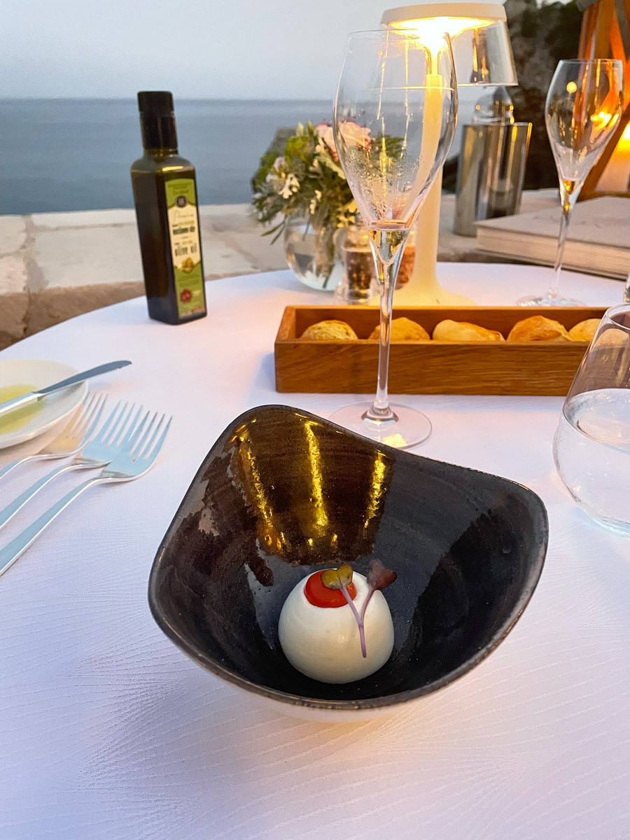 Nautika, smještena ispod tvrđave Lovrijenac, odmah kraj mora, ima neprijeporno najspektakularniju terasu u Hrvatskoj i jednu od spektakularnijih na Sredozemlju. Pouzdani chef Mario Bunda sinoć nam je ispekao fantastičnog romba, posve bijelog, želatinoznog, čvrstog i sočnog. Bisque od škampa s tartaron od kozica i kavijarom bio je veoma intenzivan i dubok, a hrskavi kroket od sipe dobio je ekstra dozu atraktivnosti zahvaljujući kiselo-slatkom coulisu od rajčica. Uz svako se jelo poslužuje različito maslinovo ulje: neka su lokalna, a druga istarska Belićeva.