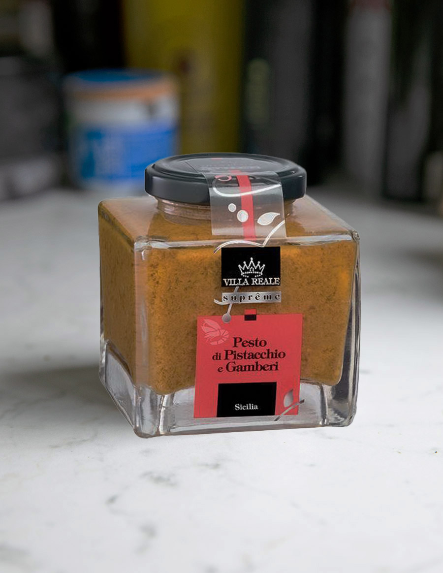 Pesto s gamberima i pistacijama sicilijanske Ville Reale uzoran je primjer takvog, visoko gastronomskog žanra pesta. Prvo, Villa Reale Pesto s gamberima i pistacijima sadrži 45 posto mesa gambera i 12 posto pistacija. Nije, dakle, riječ o industrijskom proizvodu koji podsjeća na gambere i pistacije, nego o pravoj stvari. Drugo, osim što obiluje slatko mineralnim okusom rakova i specifičnim okusom pistacija, Pesto di pistazio e gamberi dodatno je zaokružen finim izborom začina i ulja i njihovim preciznim omjerima. Radi se o prvorazrednom i originalnom gastronomskom proizvodu, kakvih je na hrvatskom tržištu malo.