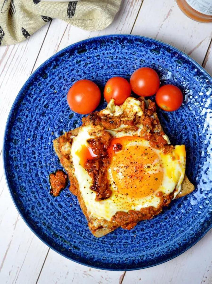 Svojedobno je na TikToku viralan bio video u kojem žena prije nego što peče jaja na oko, na ulje na tavu dodaje malo pesta. Pesto ne voli previsoke temperature, ali jaki crveni pesto poput Trapanesea zbog masnoće od badema koju sadrži i sušenih rajčica izdržat će par sekundi na tavi i jajima će dati fenomenalan veseli okus. Druga varijanta je da umiješate žličicu Pesta Peperone u kajganu dok miješate jaja na tavi ili da je stavite na omlet neposredno prije nego ga izvadite u tanjur.