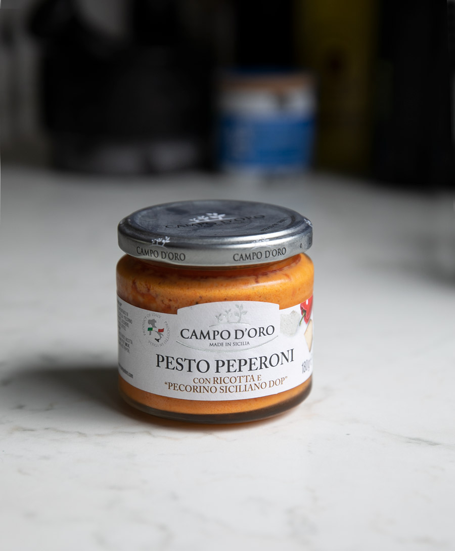 Ovaj blagi, raskošni pesto radi se od paprika i dvije vrste sira, ricotte i pecorina. Okus paprika pokriva sasvim drugu skalu kombinacija od rajčica. Svježi okusi ljetnih paprika i izraženi okus sira ovaj pesto čine posebnim. On je kao jako dobro začinjen kremasti sir, pa je idealan je za rižoto, ali i kao podloga za sendviče, dip ili dodatak punjenju za raviole. Kušajte žličicu pesta i ideje će vam same početi navirati.