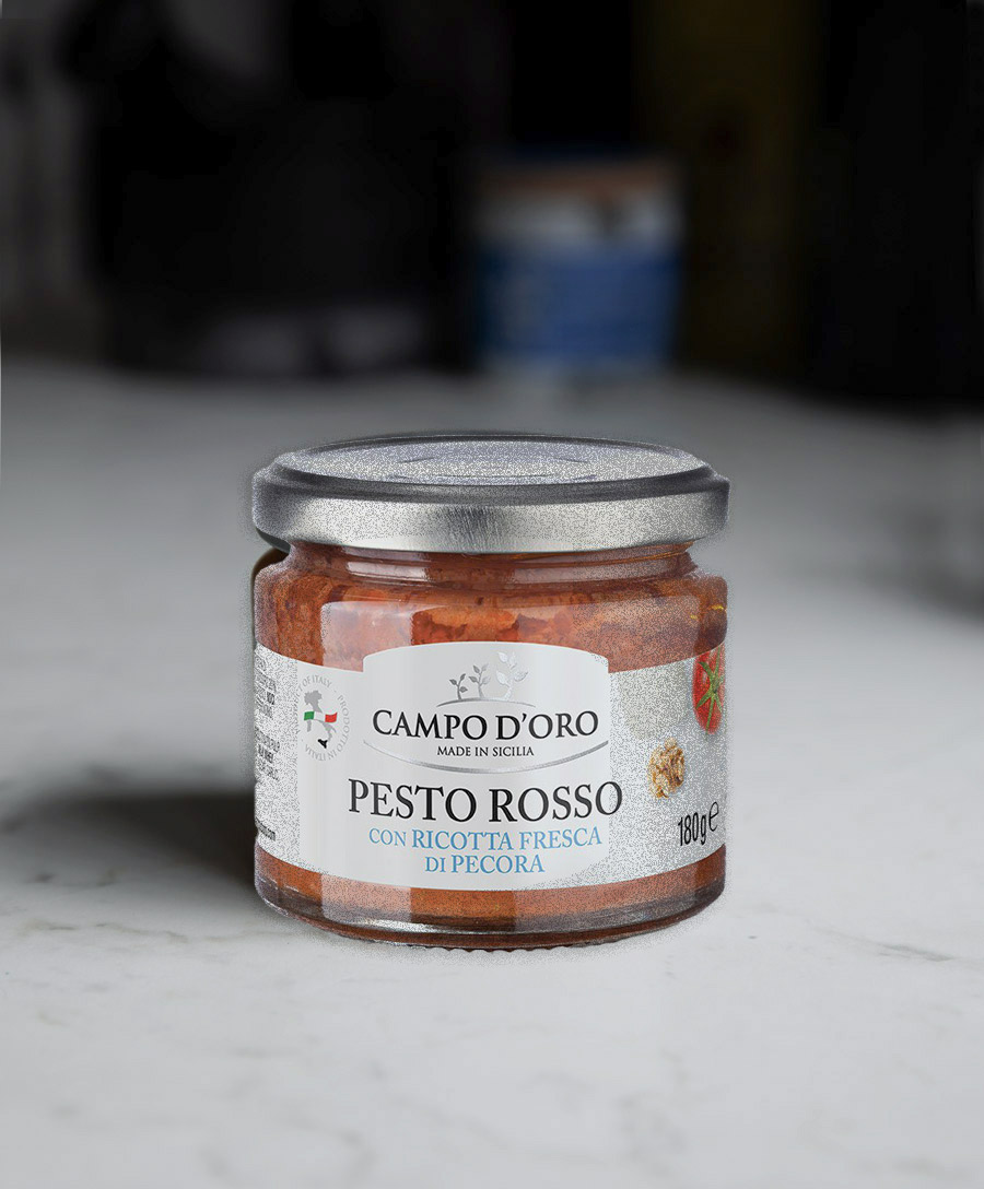 Klasik. Zrele rajčice, svježi bosiljak, oraščići i kozja ricotta. Ovaj pesto samo ćete jednom kupiti kao jednu teglicu. Svaki idući put trebat ćete još jer funkcionira odlično u desecima jela, izvrstan je hladan, dobro podnosi temperature. Kao u svakom Campo d’Oro pestu, svježi okusi rajčice i bosiljka fenomenalno su očuvani, jako živahni a zaokruženi i neagresivni. Možete ga koristiti za sve od tjestenina do salata i sendviča. Pesto Rosso je autentični kuhinjski workhorse.