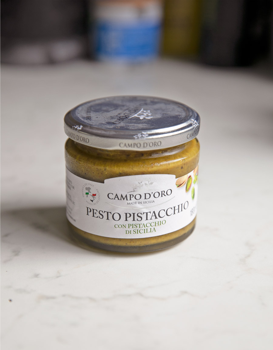 S više od 50 posto pistacija, od čega 30 posto najboljih sicilijanskih, ovaj pesto već ulazi u luksuzne delikatesne proizvode. Takav mu je i okus, elegantan, kremast, sa specifičnim slatkasto-zelenim notama južnjačkih pistacija i savršenim balansom sastojaka. Mogli bismo ga jesti samog, žlicom.