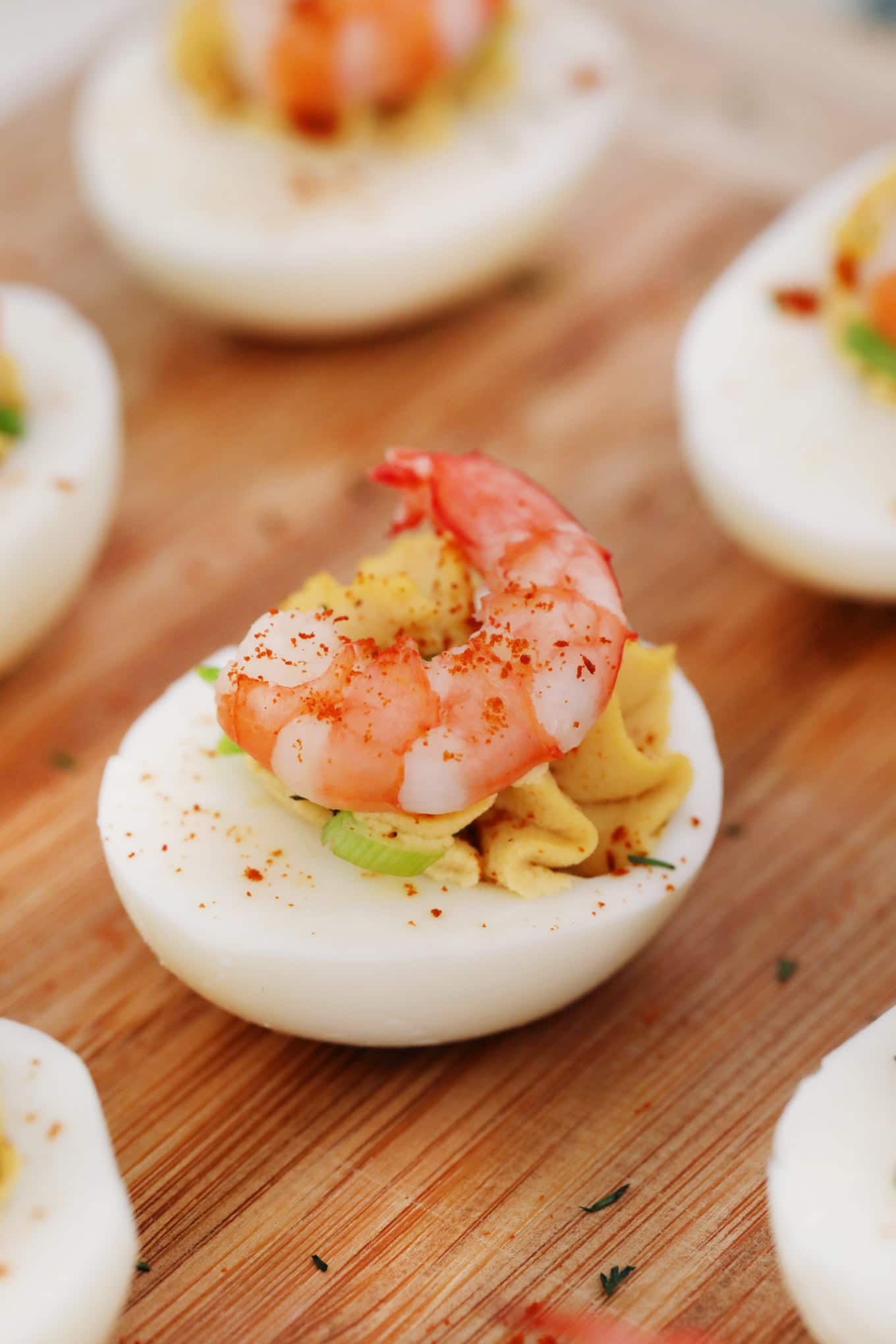 Ovaj veličanstveni, senzualni pesto treba kombinirati s najbogatijim okusima. Skuhajte jaja na tvrdo, izvadite žumanjke, pomiješajte ih s pestom od škampa i pistacija i napunite polovice jaja. Dobit ćete raskošne, elegantne kanapee za pamćenje.