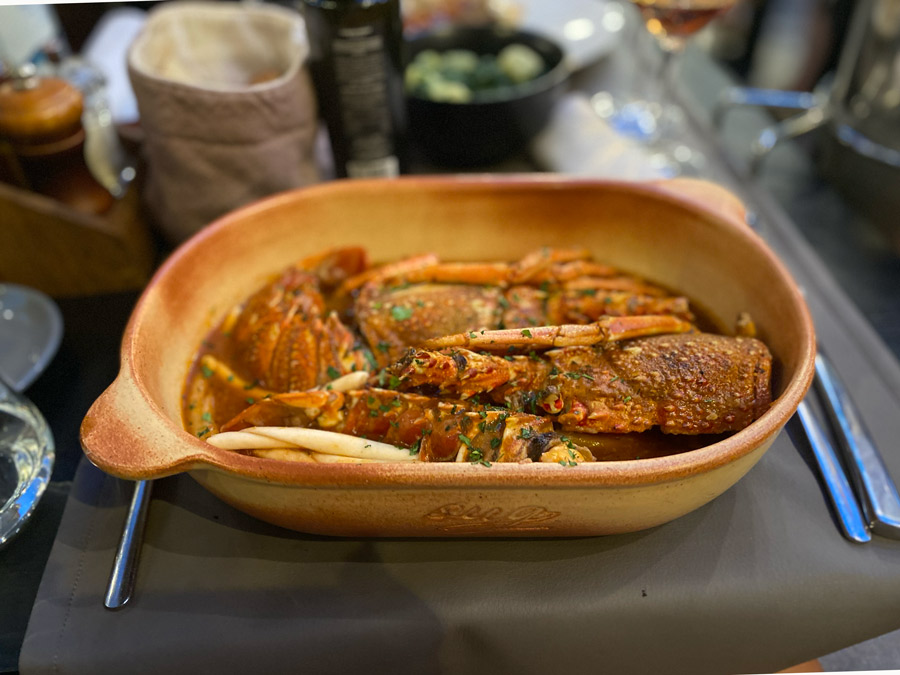 Tako smo naručili jelo kojim se Šug vrlo vjerojatno najviše ponosi, jastog a la Šug i dnevni ulov ribe. Iako nismo vidjeli jastoga živog pa ne možemo garantirati koliko je svjež bio, meso jastoga bilo je dovoljno ukusno. Uz poveću količinu jastogova mesa dolaze i domaći makaruni i neodoljivi šug u kojem sve to skupa pliva. Umak, odnosno šug, je uistinu imao sve okuse dok su makaruni pomalo neravnomjerno kuhani. Neki su bili al dente, a neki prekuhani.