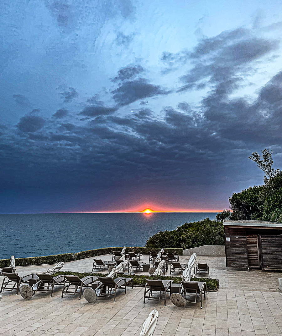 Miramare, međutim, nikad nismo stavljali na naše liste najljepših, najromantičnijih i najspektakularnijih terasa, jer je hrana bila naprosto hotelska. Sinoć smo poslije četiri godine večerali u Miramareu. Nad zapadnom se Istrom spremala oluja koja nas je iz daljine pozdravljala velikim munjama i opakom grmljavinom, ali je ipak, osim malo kiše, zaobišla Poreč. Crveno sunce zabilo se između mora i niskog sloja antracitno sivih oblaka, što je natjeralo većinu gostiju da se dignu od stola i snimaju ovaj sunčano oblačno morski spektakl.