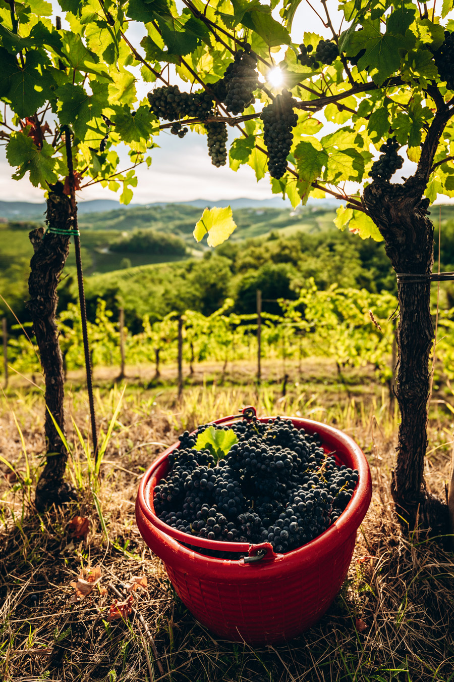 U slovenskim se Brdima, dakle, rane sorte za najbolja vina sada beru u predzadnjem tjednu kolovoza. Gospodin Simčič kazao nam je da njegovi vinogradi nisu u osobitom stresu od suše, jer je riječ o starijim lozama i o položajima koji su uspjeli sačuvsti nešto vlage. Stoga Simčič, usprkos najgoroj suši koja je pogodila Brda u ovom stoljeću, očekuje vrlo dobra vina.