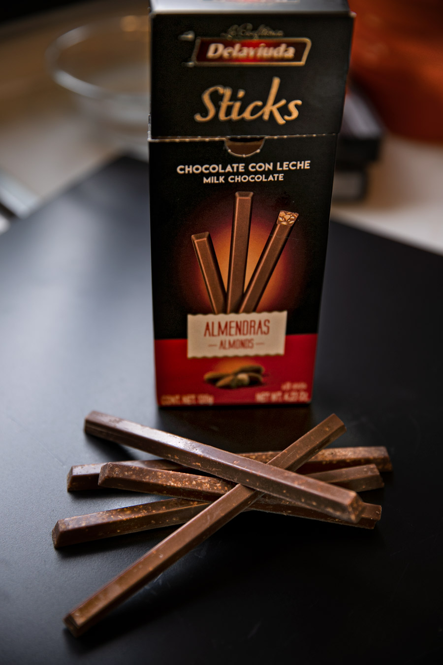 U ovim štapićima od fine mliječne čokolade (35%) bademi su mljeveni tek malo krupnije od paste, tako da do izražaja dolazi i kvaliteta čokolade i okus oraščića. Delaviuda štapići s bademima su tanki, svilenkasti, imaju dobar snap i jasan okus badema koji se povremeno osjete pod zubima i kontriraju slatkoći mliječne čokolade. Klasično i elegantno.