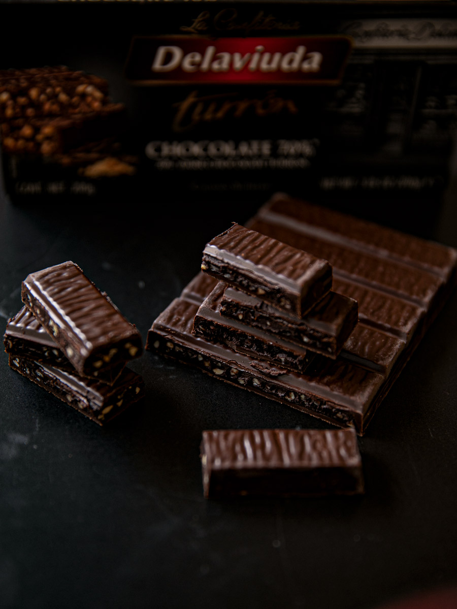 Prvi dojam je da se u Delaviuda čokoladnim torronima čokoladi se pristupa vrlo ozbiljno. Napravljeni su po zanatskim čokolatijerskim standardima, od kakaa visoke kvalitete, bez aditiva tipičnih za industrijske čokolade. Punjenja su očekivano dobra, fino balansirana, različitih tekstura, s puno pažnje posvećene detaljima poput veličine zrna mljevenih oraha ili rasporeda komadića voća u čokoladi. Table turrona su podijeljene u štapiće koji se lako odlamaju, tope se u ustima, imaju finu glatku teksturu i jako kremasti mouthfeel. Ako volite čokoladu, ovo je veselija, zabavnija comfort verzija koja će vas iznenađivati sa svakim novim okusom.