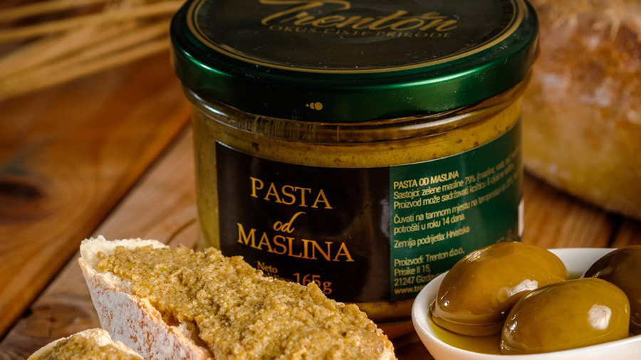 Jučer smo, međutim, u lokalnom supermarketu vidjeli Trentonovu pastu od zelenih maslina, koja nas je zainteresirala naprosto zato što u našim dućanima neka puno sličnih proizvoda. Police svih mogućih samoposluživanja pune su crnih tapenada, dok su paste od zelenih maslina relativno rijetke. Trenton je, dakle, pronašao zgodnu malu tržišnu nišu.