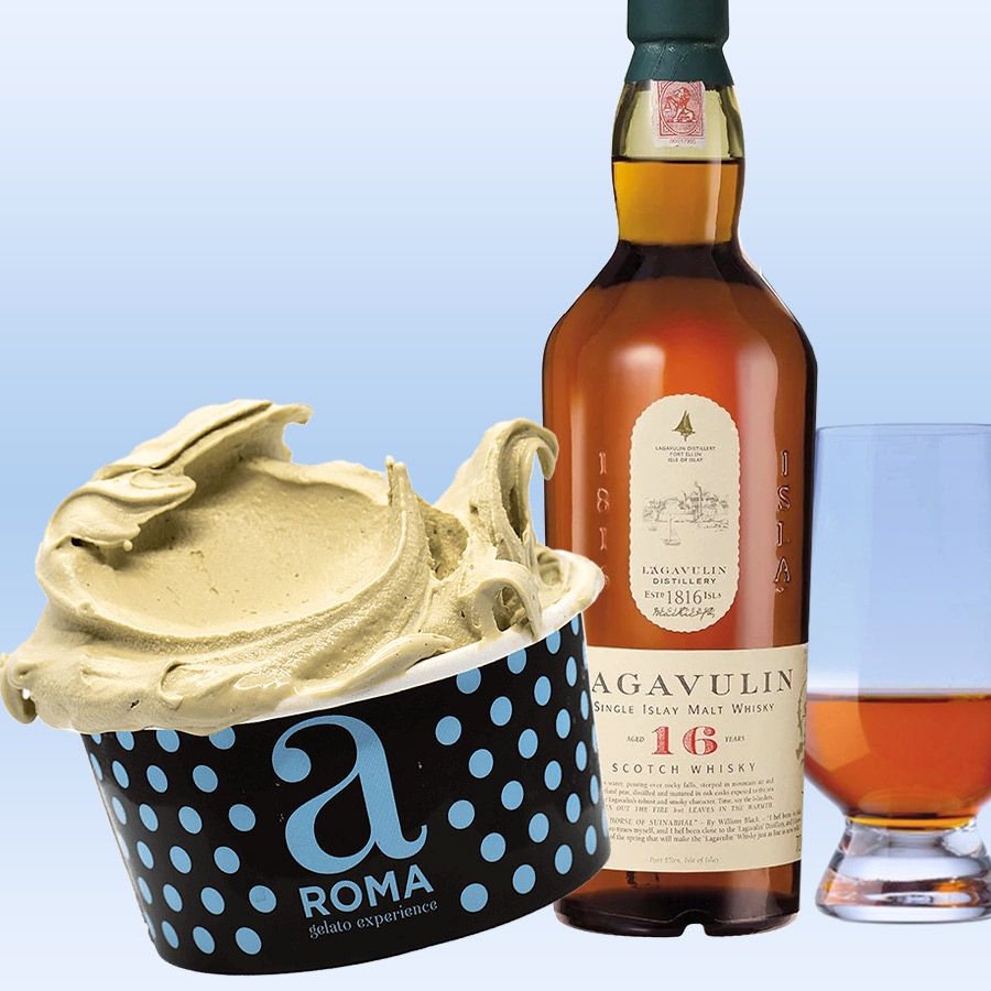 Gelato od sicilijanskih pistacija luksuzan je, kremast, umjereno sladak i jako intenzivan u okusu.  Zbog intenziteta okusa, ovdje provjereno dobro funkcionira kontrastni pristup slaganja pića i hrane. Dakle, raskošnoj ledenoj kremi punoj specifičnih okusa vrhunskih pistacija suprotstavljamo jako zadimljen, podjednako intenzivni malt whisky s otoka Islay, pun aroma morskih trava i soli.