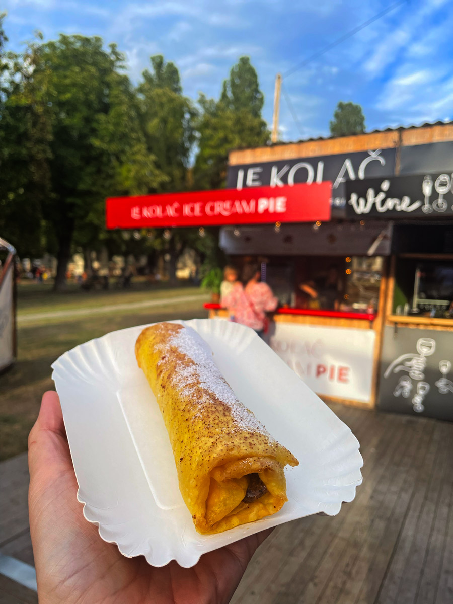 Desert dolazi na kraju i ovogodišnji je možda jedan od najboljih dosad na Burger Festivalu. Le Kolač Roberta Hromalića redoviti je sudionik food festivala, nerijetko s bestselerima. Ice Cream Pie svakako spada u tu kategoriju. Le Kolač proizvodi svoje sladolede, pa na Burger Festivalu prodaju tople brioše i vruće hrskave pite sa sladoledom. Tijesto je punjeno sladoledom i šokirano, pa trebate samo pekač ili fritezu s precizno namještenom temperaturom i minutažom da dobijete fenomenalan ulični desert. Različiti okusi sladoleda dolaze s različitim Le Kolačevim pripravcima: karamelima, nougatima, coulisom…Probali smo pitu s lješnjakom, karamelom i vanilijom i sigurno nam neće biti zadnja.